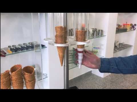 - Der Salva Cono erlaubt dem Eiskonditor das Waffeleis zu servieren ohne die Waffel zu berühren! Man kann den Waffelgreifer dem Kunden direkt anreichen oder den Salva Cono in den Waffelhalter abstellen aus dem der Kunde die Waffel dann entnimmt.